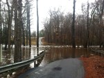 Despite the dreary weather, after we had filed the paperwork for the perc test, we decided to drive by and look at the property.  When we reached the turn off to Colemans Lake Rd, we were surprised to see that it was closed due to flooding.  Undeterred, we drove around the sign and somehow were still completely unprepared for what we saw when we approached the lake…