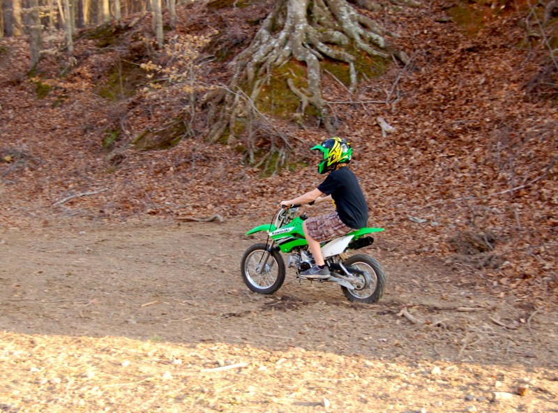 Adam takes another turn on the dirt bike