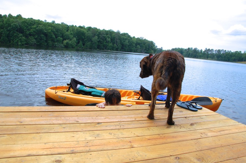Waffles, ready to help the boys back onto the dock