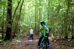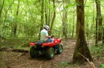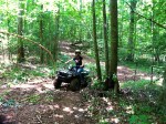 We crossed over Colemans Lake Rd and headed over to the other side of the property to see what we would find. We drove directly into the entrance of the new trail without considering that we might want to check it out before bringing Max along on his dirt bike. Probably not an awesome parenting decision. The path was extremely slippery, very rough, and still had stumps protruding from the ground as well as broken branches hanging down from the trees above. Max lasted about half way into woods before refusing to go any farther. I had been following behind on my ATV keeping an eye on him and could see that he was having difficulty, so was somewhat relieved when he wanted to turn around and go back. Dave, too, was happy enough to take his own dirt bike back and trade it in for the ATV. We rode Max back to the truck where he happily sat playing on his iPad while Dave and I went back to check out the rest of the trail atop the much more stable ATVs.