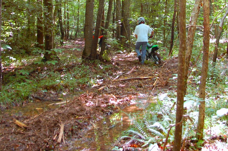 ever the patient dad, Dave walks Max’s bike across to drier land