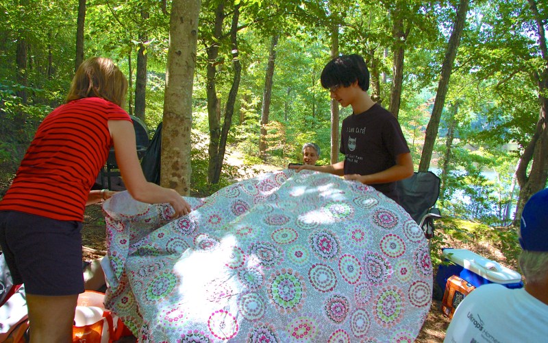 Lynne and Max set up the table