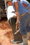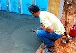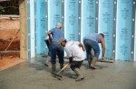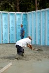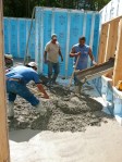 While a few of the crew continued to smooth out the slab, the others began to work on the post supports for the deck.