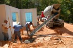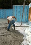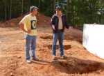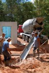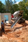 As George Lewis handles the excavation side of the business, and Kris the construction end, once excavation began we didn’t see him again until it was time for the concrete slab to be poured.  When we arrived Thursday morning, the process was well underway and we found Kris on site along with the concrete team from Cowling Bros Building Supplies who had driven up from Waverly, Va to pour our basement slab. They were just finishing pouring the second truckload of concrete when we pulled up. A third arrived shortly there after to finish the job.