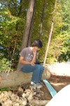 We had met Kris, what seems like forever ago, when we first met with George Lewis and Eric Riley, and walked the property with the three of them, discussing our proposed homesite, well and septic field, and getting their ideas for the driveway and what would be involved in clearing the land and laying the foundation.  Eric was already on site when we pulled up that morning, his pick up truck parked near the shed.  We introduced ourselves to him and were making small talk when we heard the distinct sound of a motorcycle approaching. We were all three somewhat surprised when a Harley Davidson pulled into the parking area and off jumped Kris Cutler.  Not the usual means of transport for a contractor!