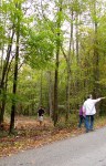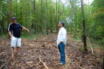 - Todd stands where he has already cleared for the power line while Dave shows Lacey the property lines and where we’d like to bring the power line in on the other side