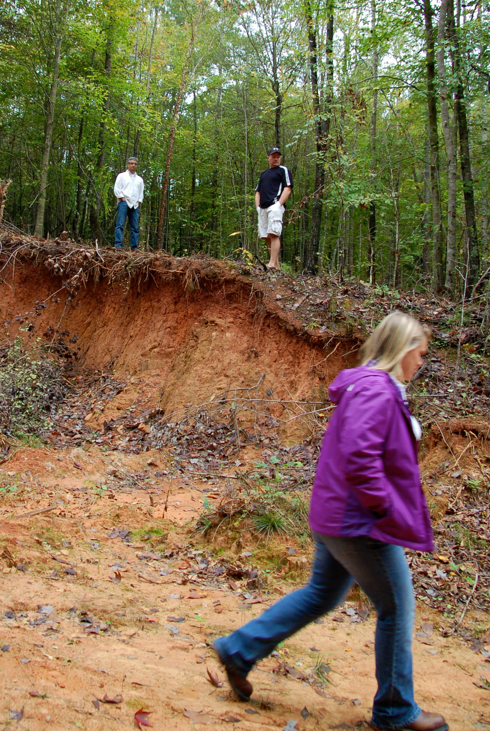 Dave and Todd, standing where we initially discussed putting the pole, while Lacey checks out other options