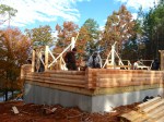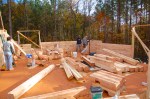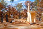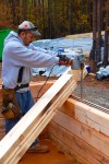 Though off to a great start, they hadn’t gotten far before discovering that some of the logs had not been notched properly. When put in place, there was a small gap between the logs that shouldn’t have been there.  The only solution was to hand cut each improperly cut notch so that the logs would lay flush. A little bit of a set back, but once the logs were notched properly it was smooth sailing the rest of the day.