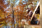 A good friend of mine, Bernard Casey, had come down for a weekend visit so we were anxious to show him the place…by the time he and I arrived at noon along with Max, the place had really started to look like a log cabin!
