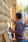 - a few of the logs have slight gaps that need to be filled before staining