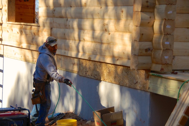 day 10 & 11…bleaching the logs and adding the log siding on the second floor