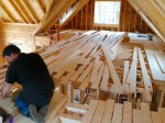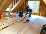 Dan, Steve and Matthew took off to the other side of the property to do a little target practice while Dave went up to the second floor to check things out. He soon discovers that the the tongue and groove flooring has been nailed down directly on top of the wiring that runs between the t & g and the first floor rafters without first putting down the protective metal plates. The purpose of these plates is to keep the wires from being damaged by nails when the flooring is placed. Without them, not only is there danger of one of the wires being damaged, but we also won’t pass inspection without them. Dave calls attention to this error to Mr. Lipham, who promptly has the crew remove all the flooring and put the plates down over the wires. And there’s another day lost.