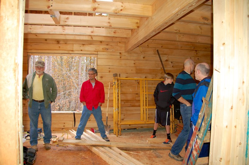 day 17…Dave discovers that the wiring hasn’t been completely covered with protective metal plates…up comes the recently placed tongue and groove of the second floor