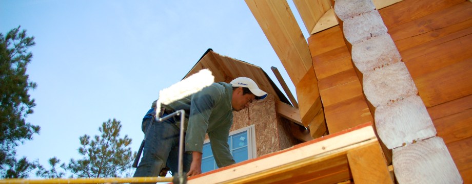 - Dave hands the roller up to Nelson to roll the few logs he couldn’t reach