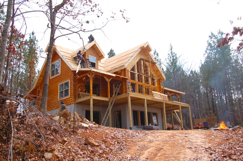when I arrived, Carlos (on the dormer peak), Mateo and Nelson, were finishing the roof in the back…Talon is below cutting the boards to hand up