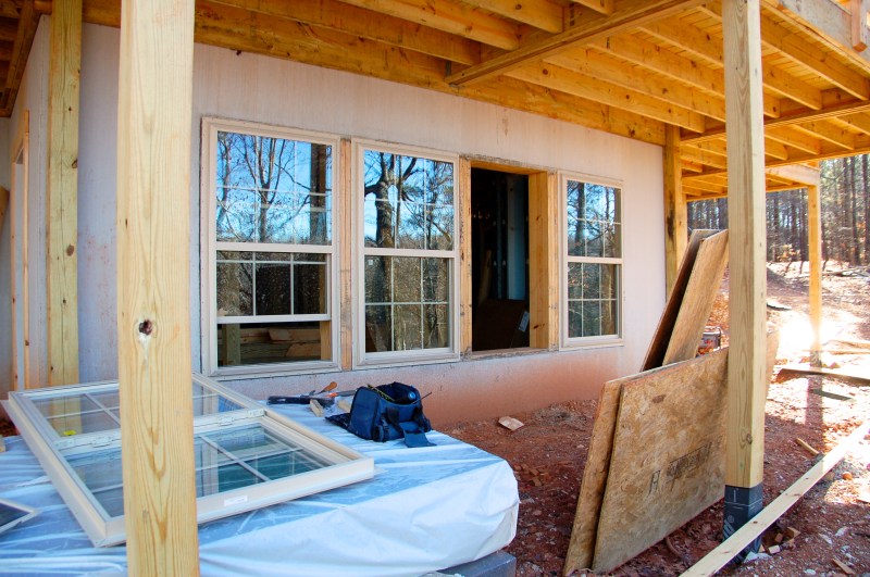 finishing the dormers, closing in the chimney, putting in the basement windows and starting the roof