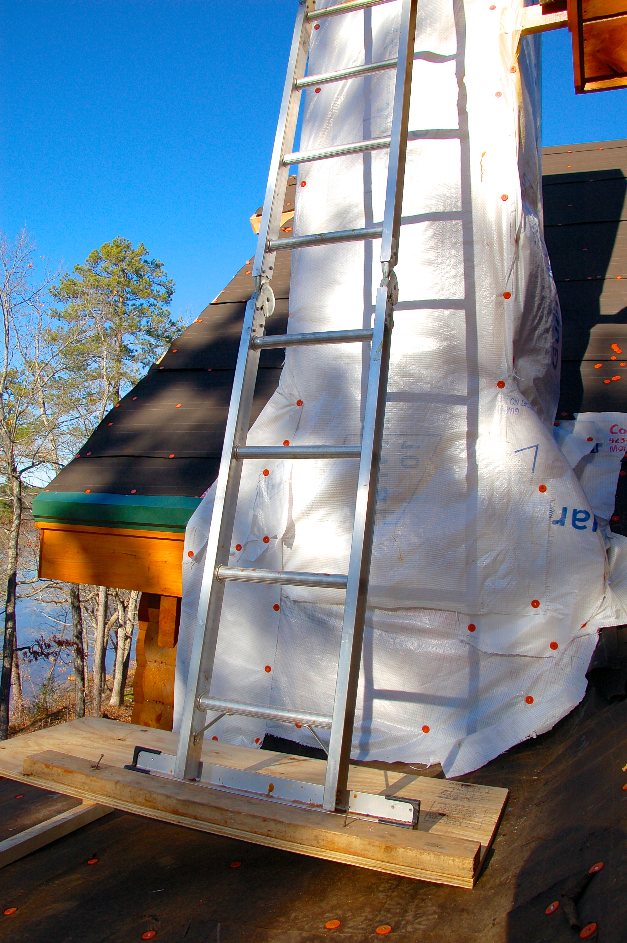 ladder in place….yep, I’m freaking out a bit at the idea of him going up the ladder with only me as his last defense if it tips