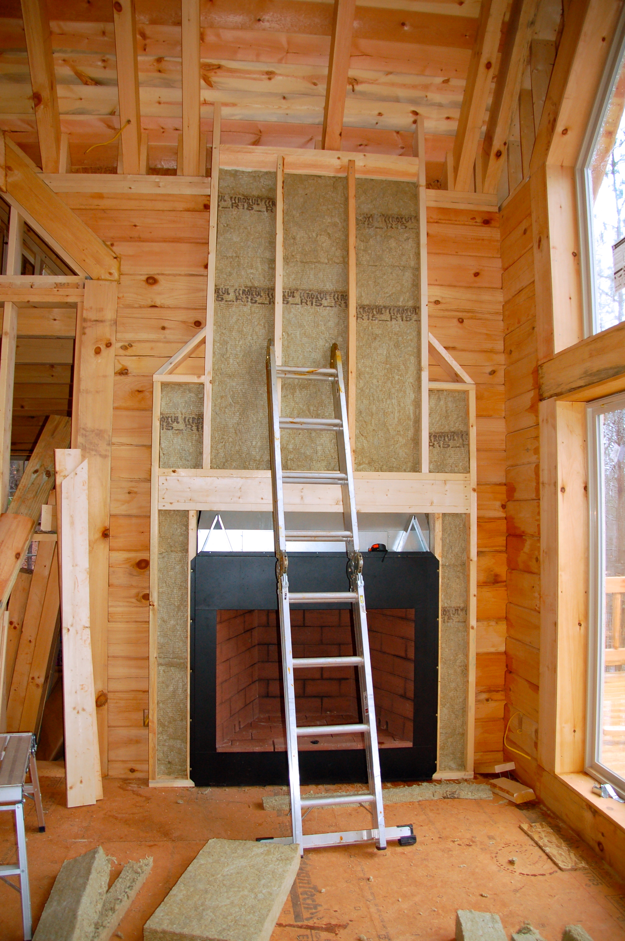 framing up the fireplace wall and hearth