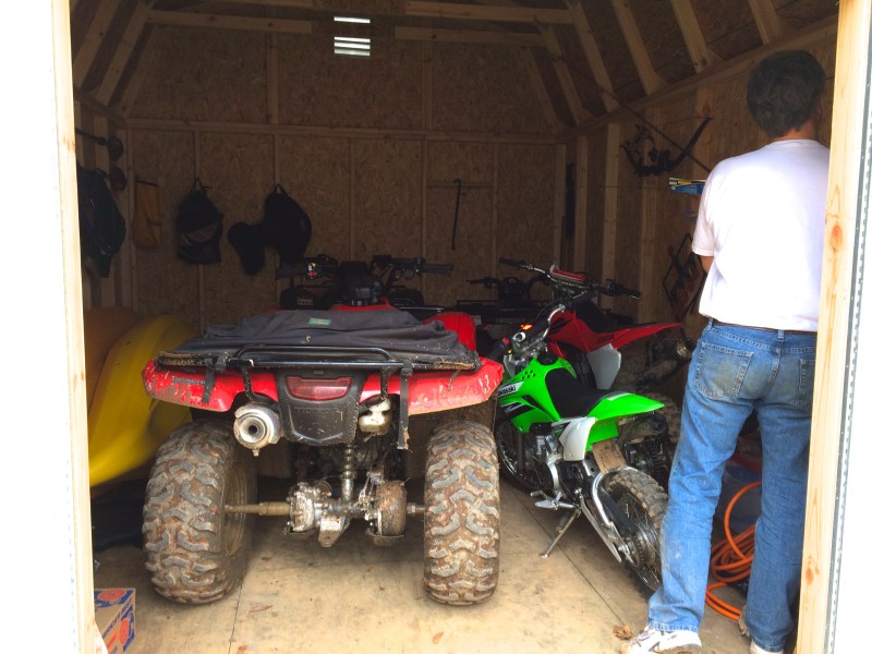 after much fun slipping and sliding in the mud, it’s time to put the vehicles away