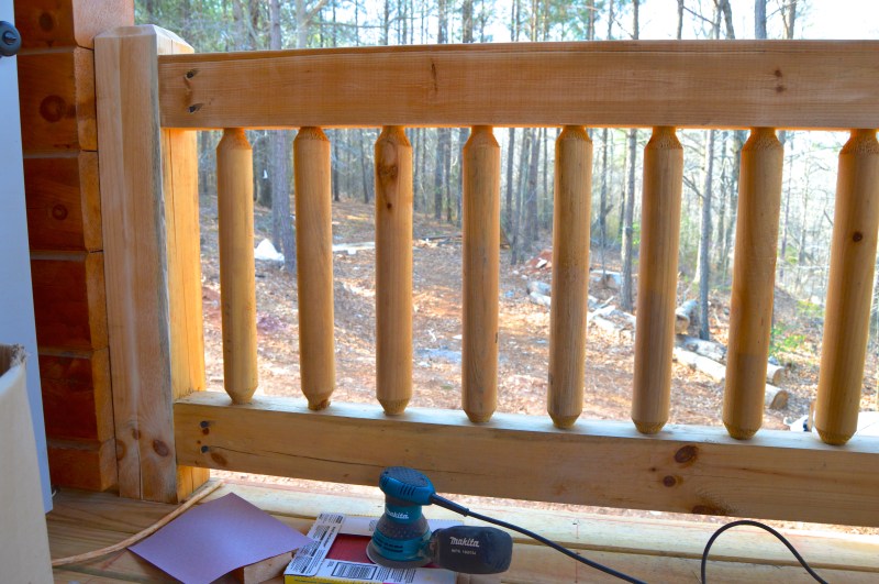 while Dave was tackling the siding issue, I began the tedious task of sanding the deck rails…taking many breaks to photograph Dave’s progress, I only got as far as this one section