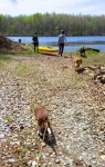 - Max takes Pancake down to the spot where we first found him a year ago….this is his first visit back to the lake since then, which is why he remains on a leash
