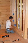 Unable to do the staining as planned, but not wanting the day to be a total waste, we moved inside and began to put up wall in the kitchen.