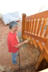 - Dave taps the end board to set it inplace before hitting it with the nail gun