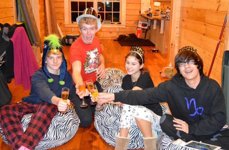 the kids toast the New Year with sparkling cider