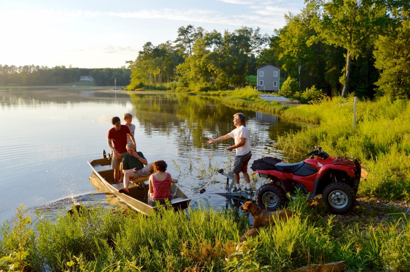 as the sun starts to fade, the kids decide to take the boat out for a spin