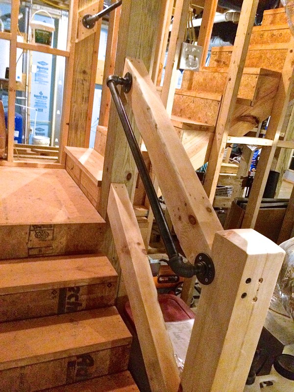 metal pipe hand rail added to the existing 4″ x 4″ rail