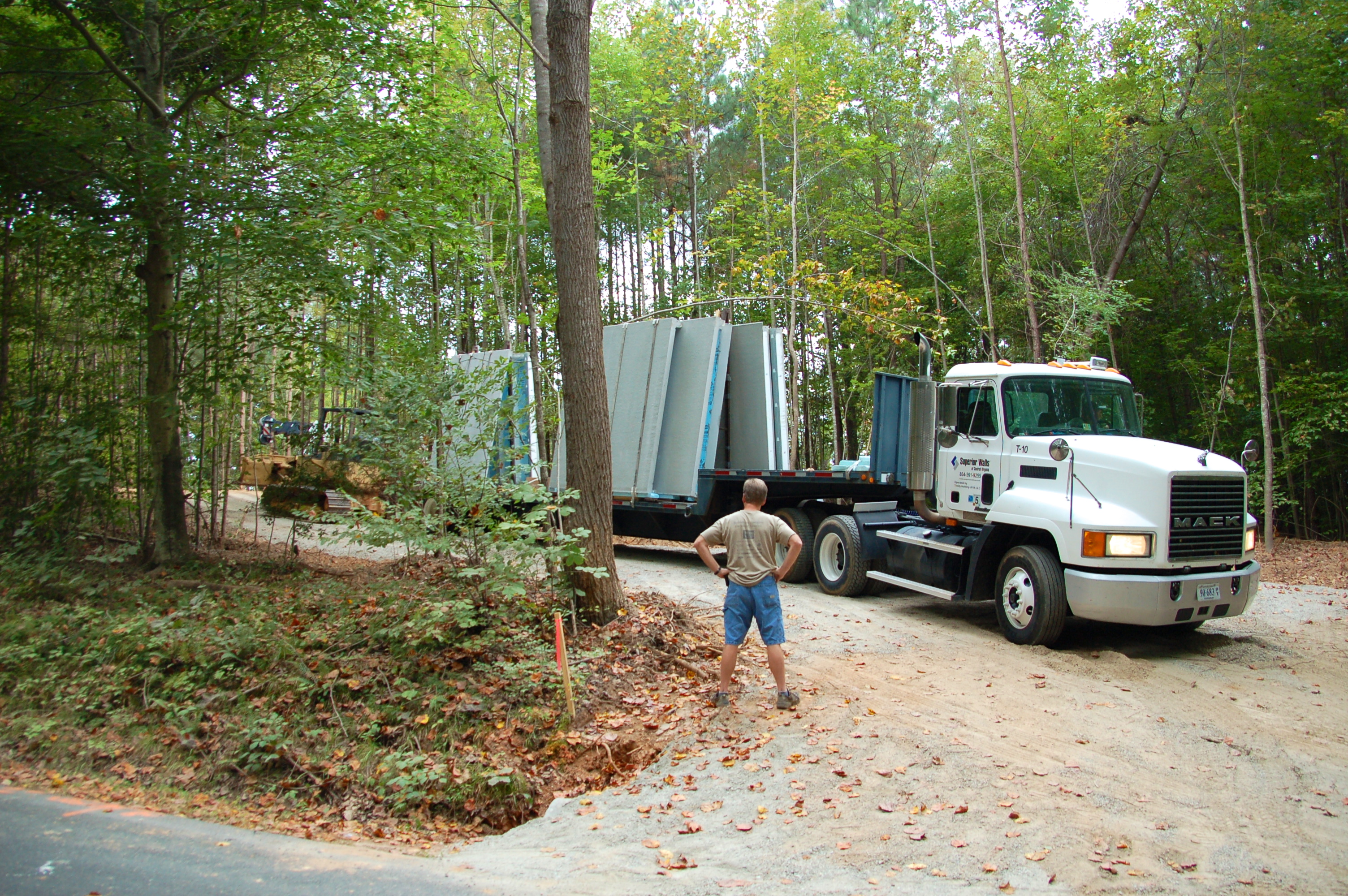 Eric supervises as the truck successfully makes the steep turn in the drive