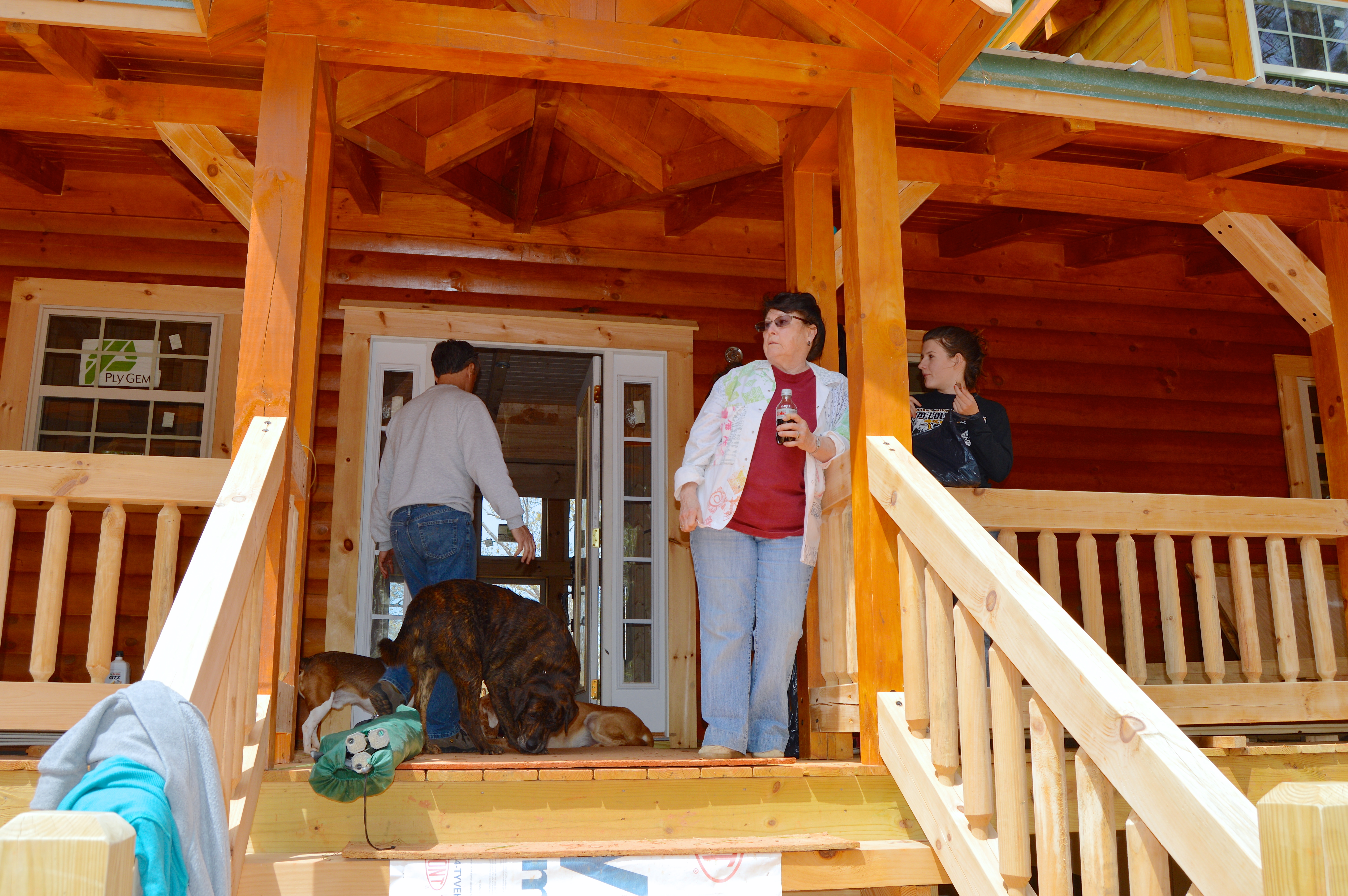 Dave, the hounds and Grandma Ginger hang out on the porch while Emily dips into her stash