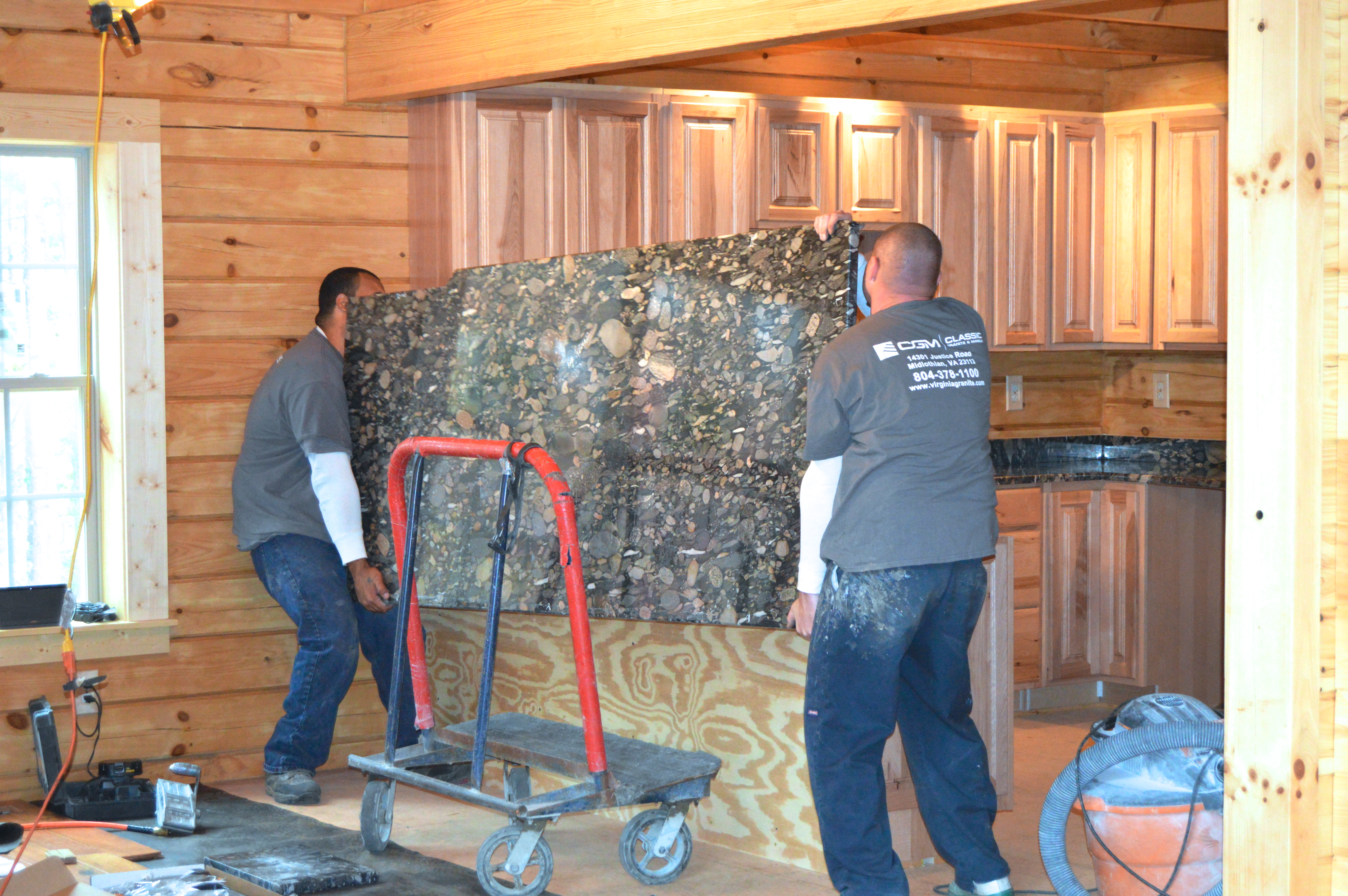 WOW! 2 big guys carry in, and set the 700 pound bar slab! Glad we didn’t have to figure out how to do that on our own.
