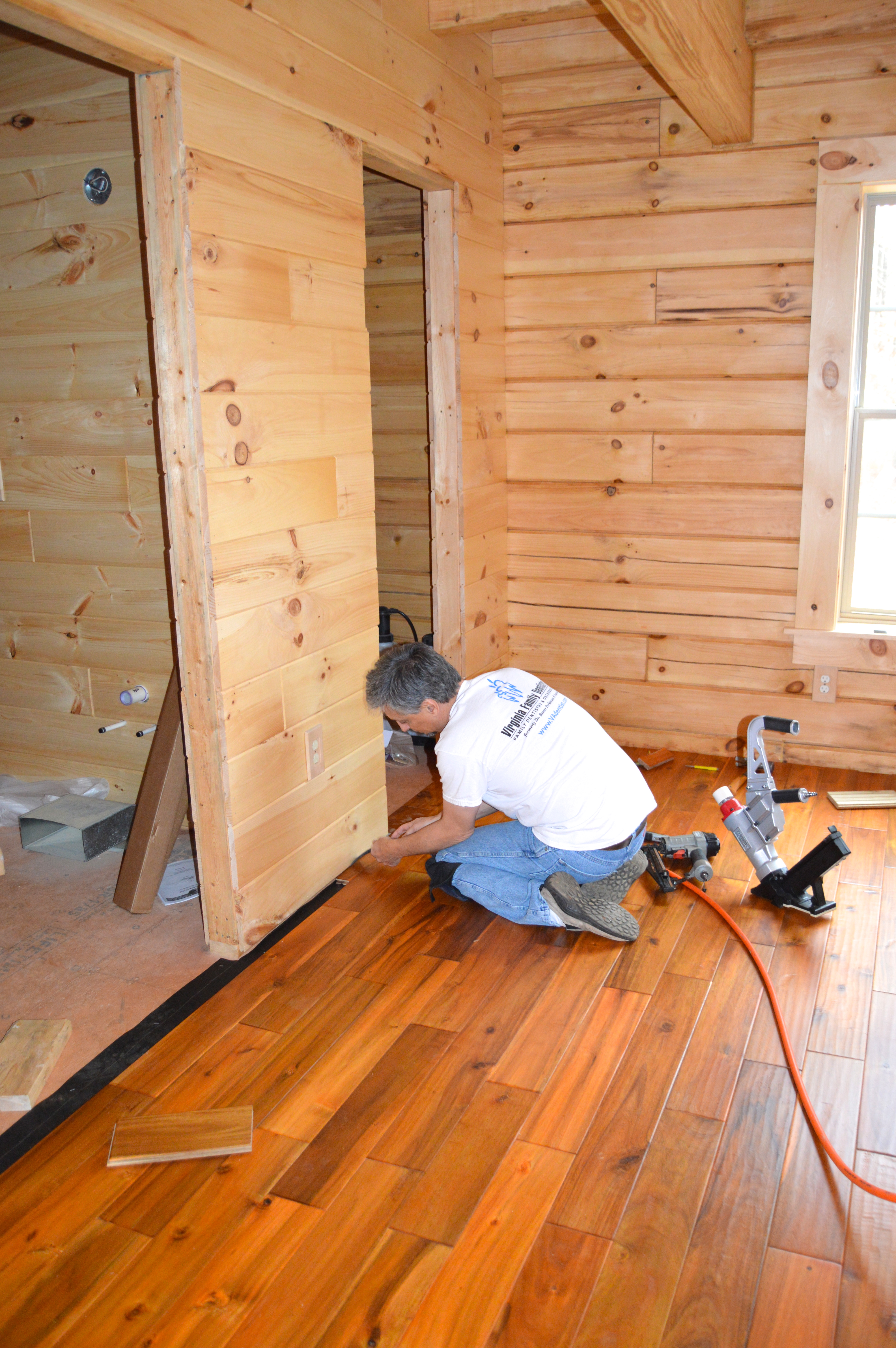 Dave, laying the floor in the master bedroom