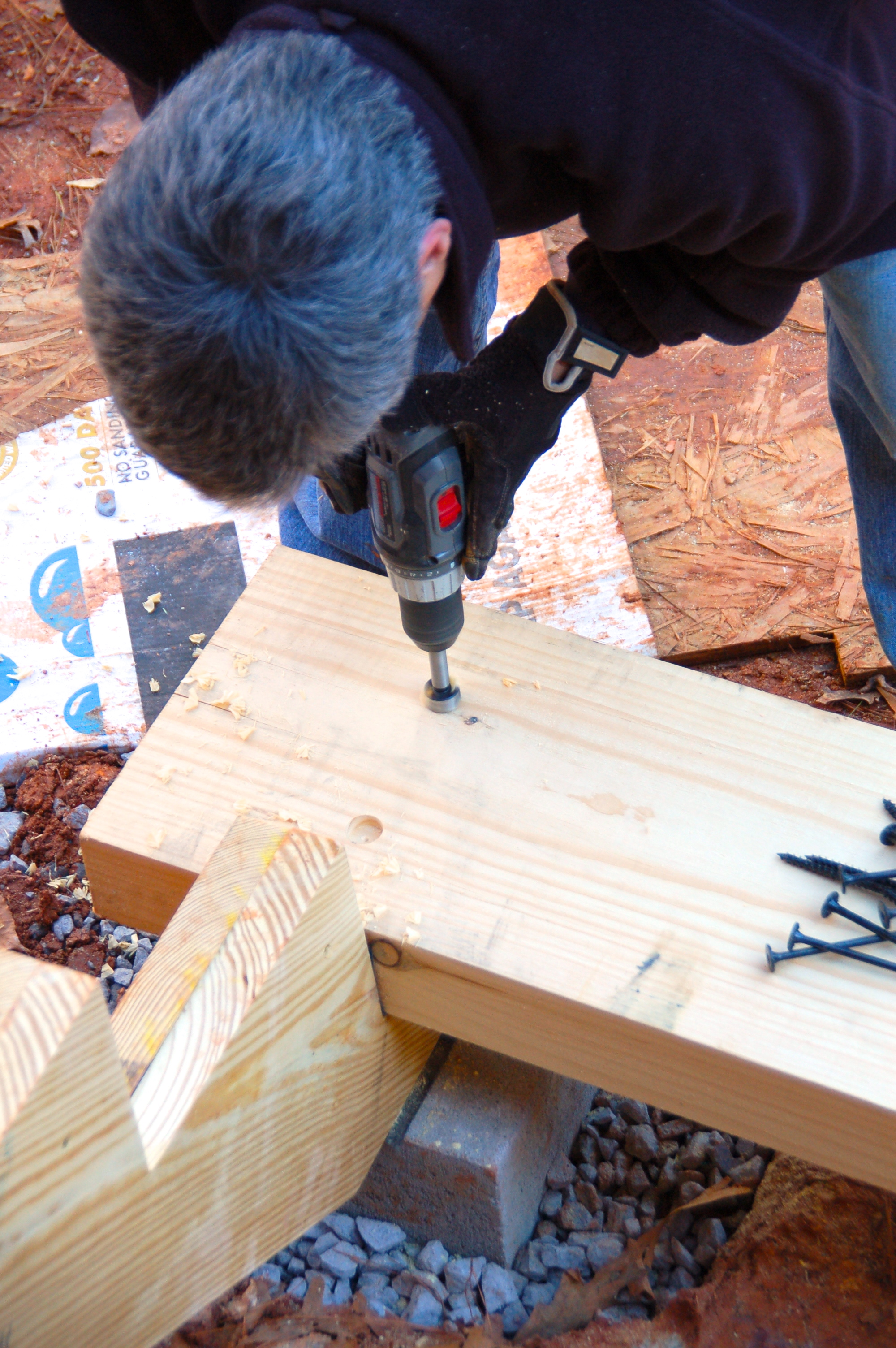 he then drills out plugs where he will sink the screws
