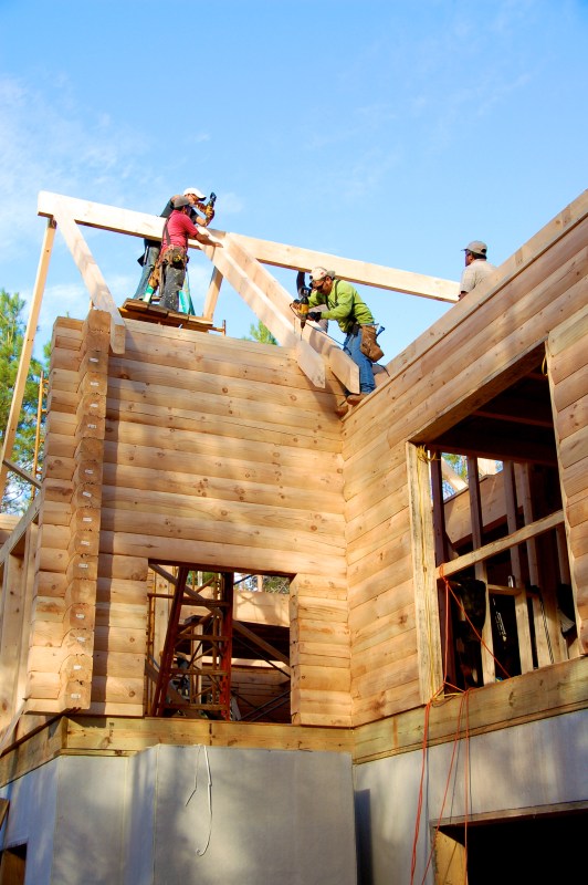 back in business, more rafters are placed
