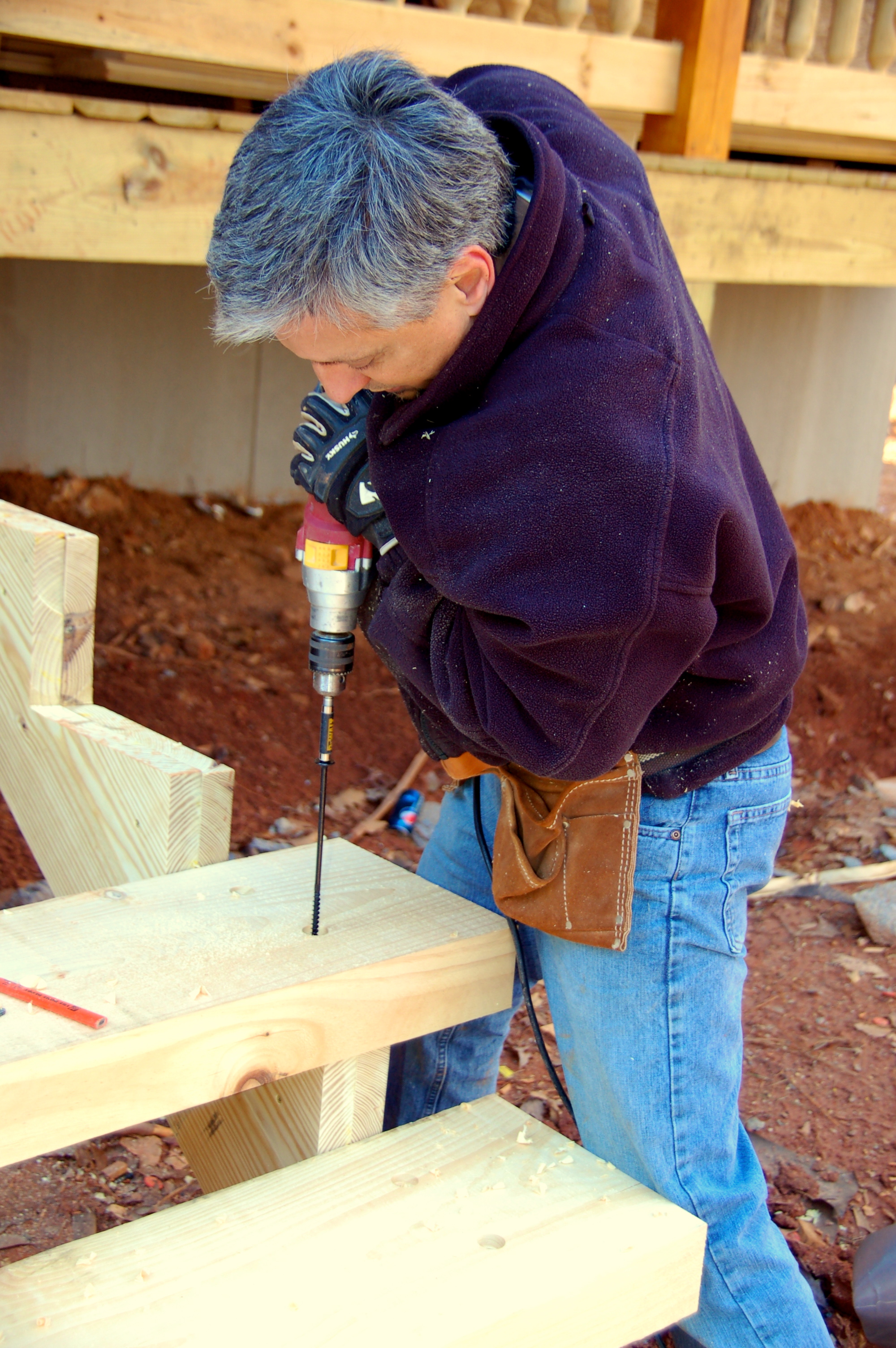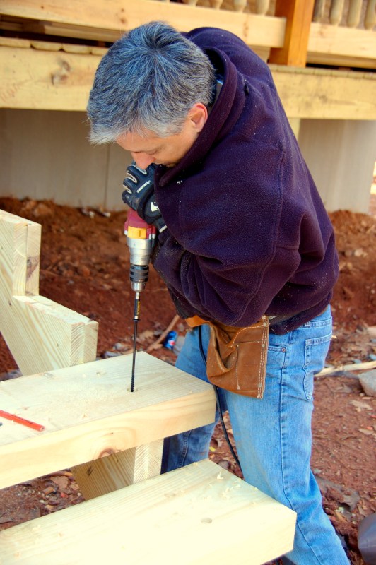 sinking the screws into the second step