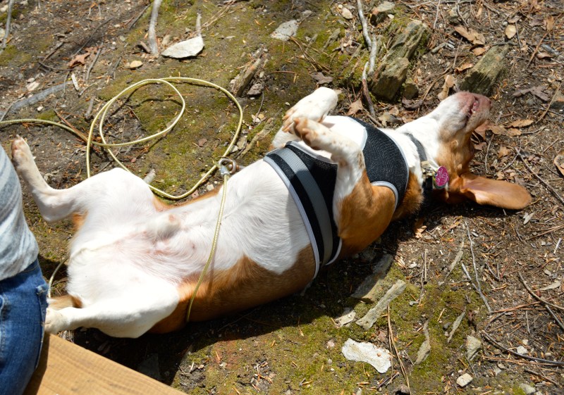 Pancake’s too busy rolling in the cool moss to try out our new well water
