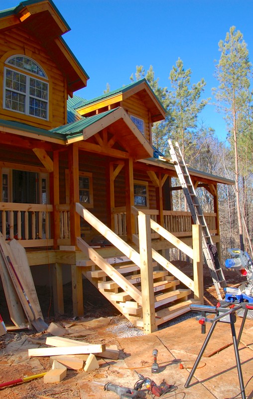 last, the hand rails go in…we will adjust these and cut the posts the correct height next week