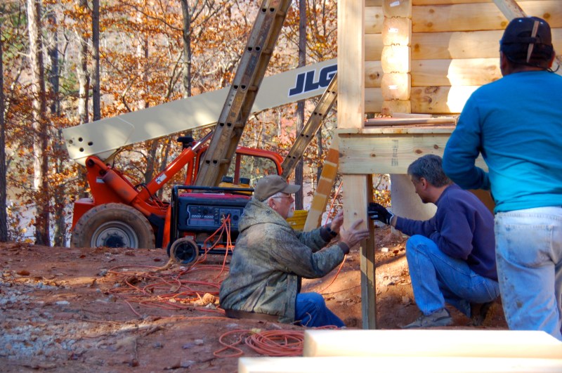 Mr. Lipham and Dave discuss where the porch posts will sit