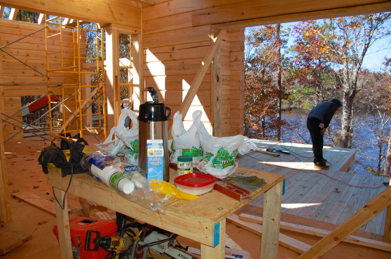 they’re building us a cabin- the least we could do was bring them hot coffee to drink on such a blustery day