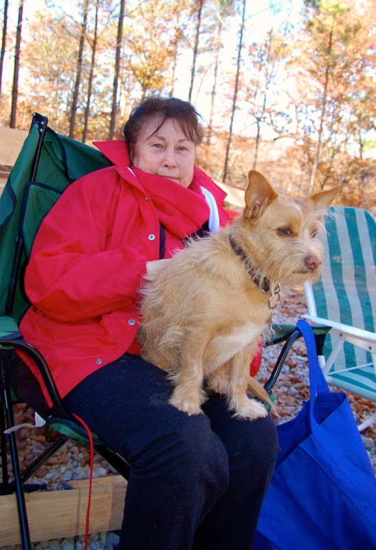 Bingo, always happy for a warm lap to sit in, soon joins Mom