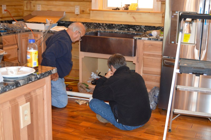 Dave puts his dad to work figuring out the plumbing for the kitchen sink