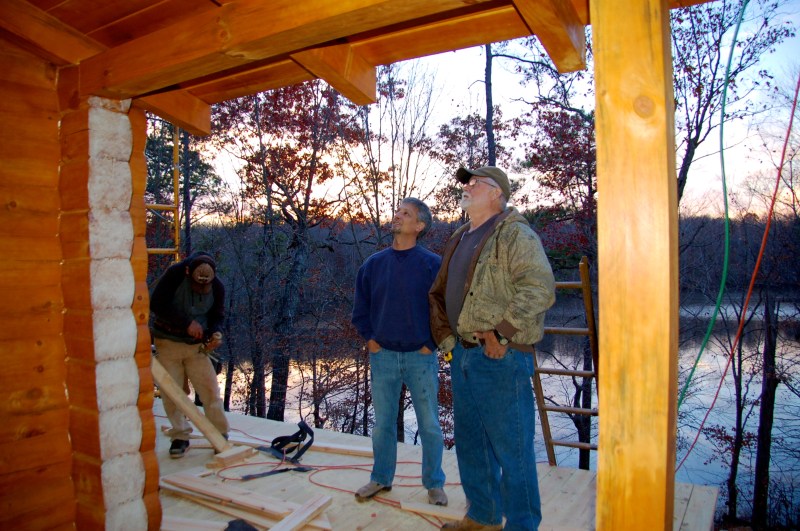 Dave and Mr. Lipham watching as Nelson seals the last few log ends