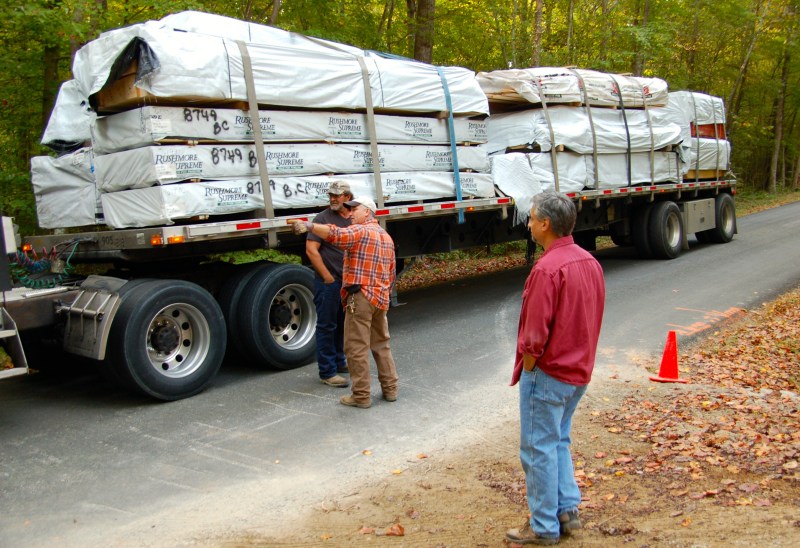 10/1/13- Dave stands by while George directs the delivery of our logs