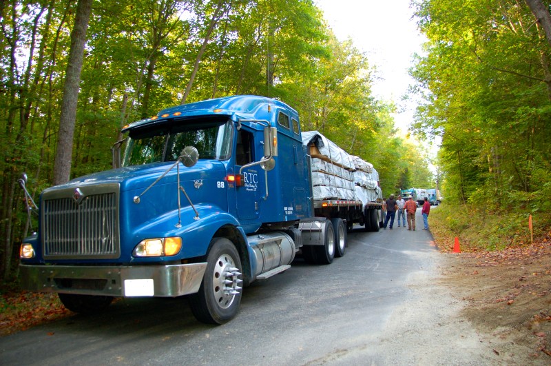 Dave, George and the three drivers discuss how to go about unloading the supplies