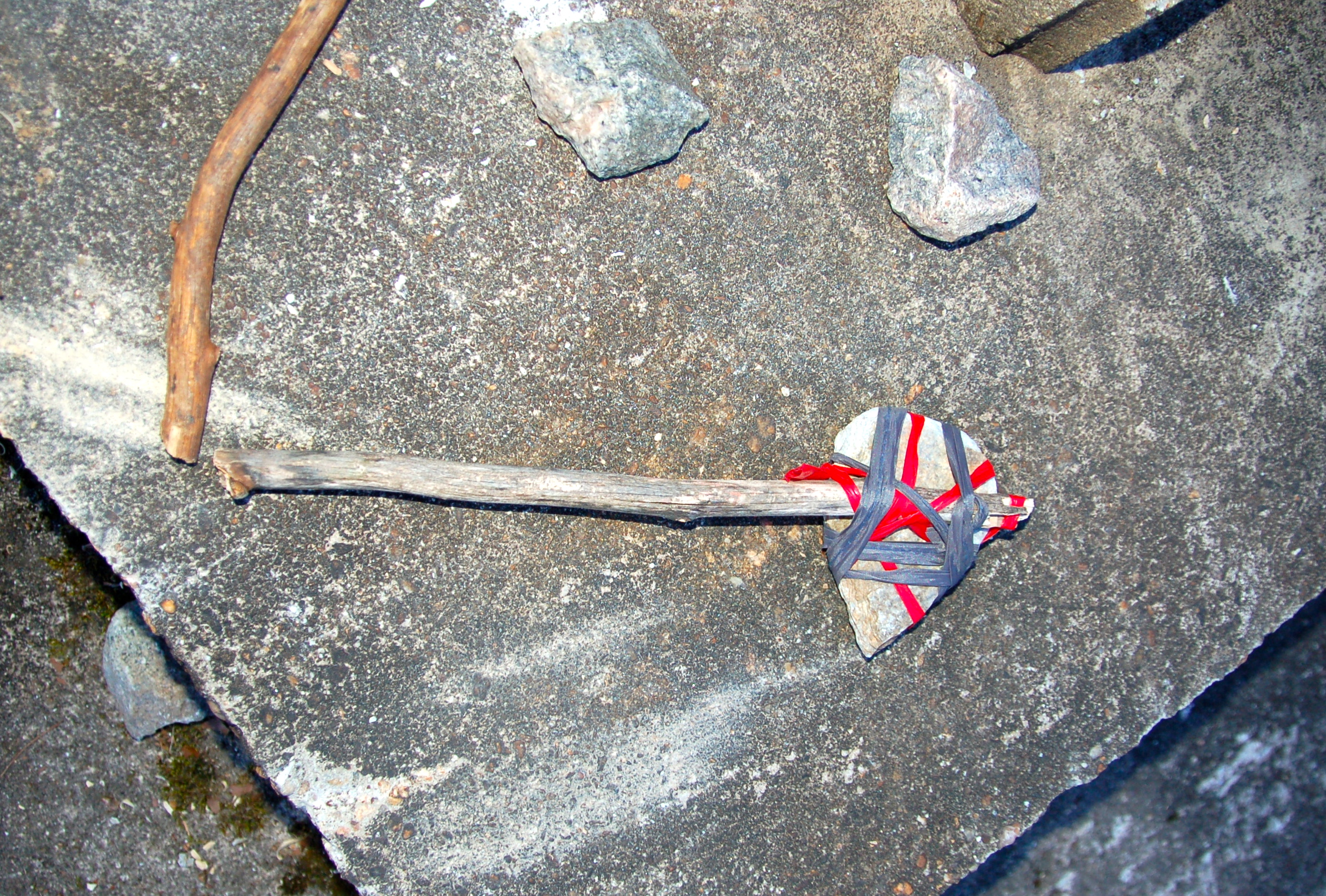 short on string, they used the pull strap from a garbage bag and a nylon tent strip…