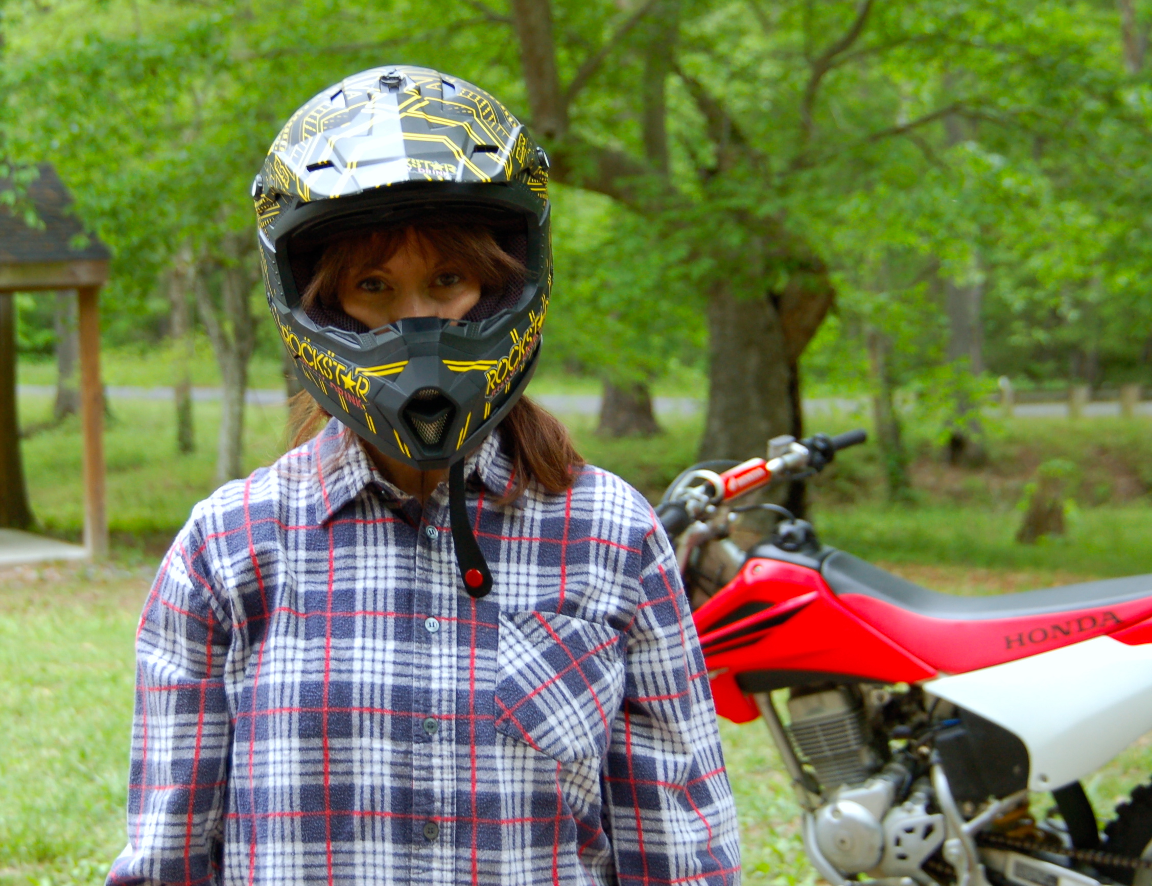 my new helmet…looks lovely with my plaid painting shirt, yes?