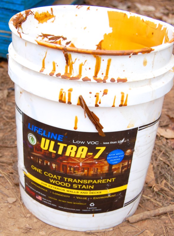 five buckets of this and we still ran out and had to order more …although they did do two coats rather than one in order to make it darker