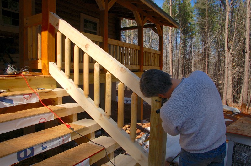 top rail in place, Dave attaches it to the post